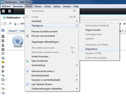 - Klik op 'Beeld', ga naar 'Weergeven' en klik op 'Paginabron'.