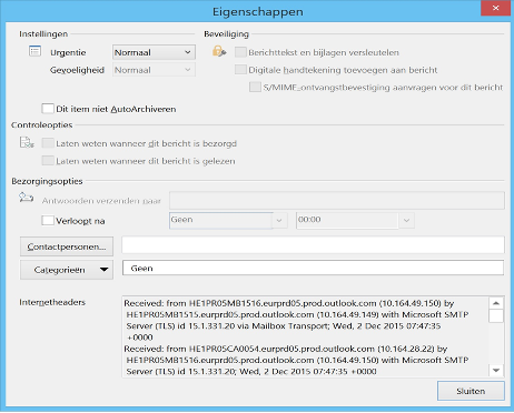 Het helpt ons als u alleen de eigenschappen van de e-mail (de zogenoemde mailheader) naar ons mailt. In deze mailheader staan onder meer de afzender, de titel van de mail en de tekst.